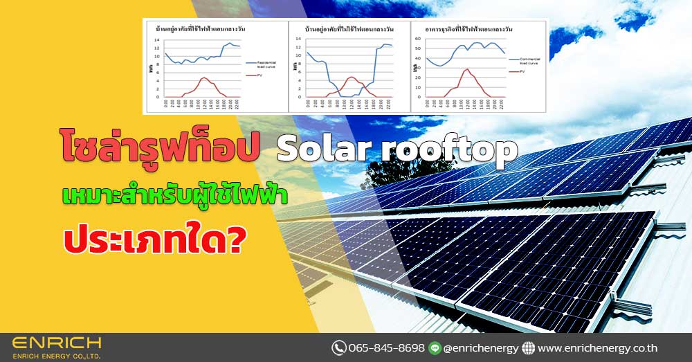 โซล่ารูฟท็อป เหมาะสำหรับผู้ใช้ไฟฟ้าประเภทใด? ลักษณะการใช้ไฟฟ้า (Load profiles) ของผู้ใช้ไฟฟ้ามีความแตกต่างกัน ผู้ใช้งานที่มีการใช้ไฟฟ้ามากในช่วงเวลาที่มีการผลิตพลังงานแสงอาทิตย์ โซล่าเซลล์ มากที่สุด หรือ ช่วงเวลากลางวัน จะได้ประโยชน์เต็มที่จากการใช้ไฟฟ้าที่ผลิตได้จากระบบโซล่ารูฟของตนเอง ที่ได้ใช้ไฟฟ้าที่ผลิตได้จากพลังงานแสงอาทิตย์ในช่วงเวลากลางวัน ซึ่งจะได้ราคาค่าไฟฟ้าคงที่ในส่วนที่ PV ผลิตได้ และสำหรับผู้ใช้ไฟฟ้าประเภทที่ 3 (กิจการขนาดกลาง) ขึ้นไป ที่ต้องเสียค่าความต้องการพลังไฟฟ้า (demand charge) นั้น ระบบโซล่ารูฟจะช่วยลดความต้องการใช้ไฟฟ้าสูงสุด (peak) ของผู้ใช้ไฟฟ้า ทำให้สามารถประหยัดค่าไฟฟ้าได้ ประโยชน์ของการติดตั้งโซล่ารูฟ ประโยชน์โดยตรงต่อเจ้าของอาคาร • ในกรณีที่ใช้ไฟฟ้าที่ผลิตได้ในอาคารของตนเองจะช่วยลดค่าใช้จ่ายลงจากที่เคยให้ให้กับการไฟฟ้า • สามารถผลิตขายให้กับเอกชนเป็นการสร้างรายได้พิเศษให้แก่เจ้าของอาคาร • แผงเซลล์แสงอาทิตย์บนหลังคาช่วยบังแสงอาทิตย์ที่ตกกระทบหลังคา ช่วยลดความร้อนหลังคา ลดการทำงานของเครื่องปรับอากาศ ทำให้ประหยัดค่าไฟฟ้า ประโยชน์ต่อสังคมและประเทศ • เป็นการผลิตไฟฟ้าด้วยพลังงานแสงอาทิตย์ซึ่งเป็นพลังงานหมุนเวียนทดแทนการใช้เชื้อเพลิงฟอสซิล ซึ่งไม่มีต้นทุนของเชื้อเพลิง และเป็นพลังงานสะอาด ไม่มีมลภาวะในขณะกำลังผลิตไฟฟ้าช่วยลดภาวะโลกร้อน • ช่วยลดความต้องการใช้ไฟฟ้าสูงสุด ในเวลากลางวัน • ชะลอการก่อสร้างโรงไฟฟ้าฟอสซิล โรงไฟฟ้าน้ำ และนิวเคลียร์ ซึ่งจะช่วยลดความขัดแย้งในสังคม • สร้างความมั่นคงด้านพลังงานให้แก่ประเทศชาติ […]